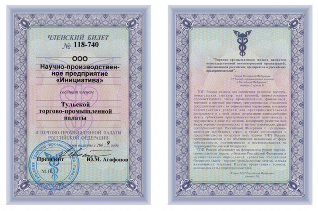 Членский билет Общества с ограниченной ответственностью научно производственного предприятия ”ИНИЦИАТИВА”